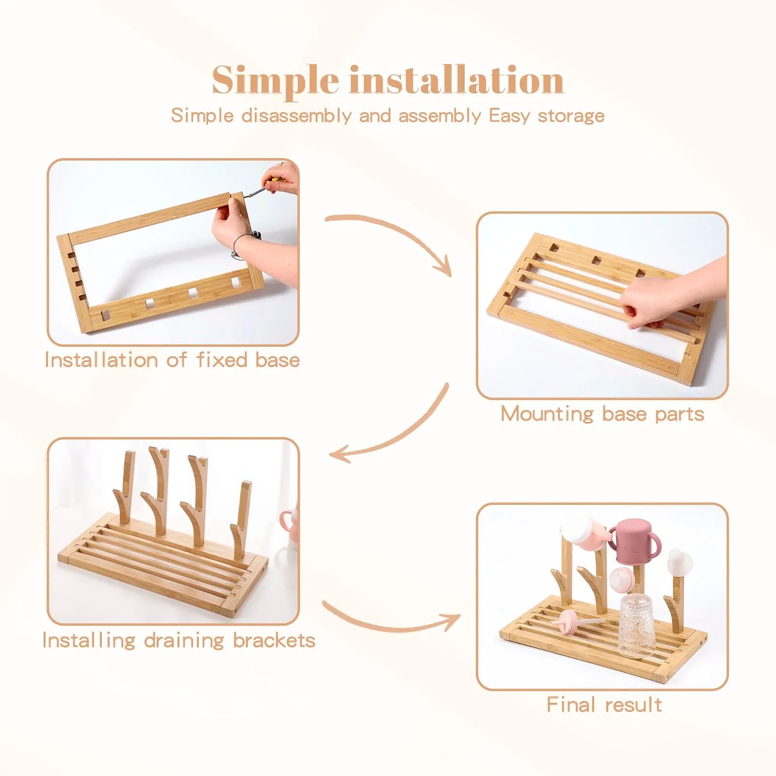 Designed for the busy parent, the Bamboo Feeding Bottle Rack offers easy disassembly and assembly for convenient storage and cleaning. You can quickly take it apart when not in use, making it simple to tuck away in a cabinet or drawer. Additionally, its straightforward design means that you can set it up in just a few moments, allowing you to focus more on what matters most: caring for your little one.