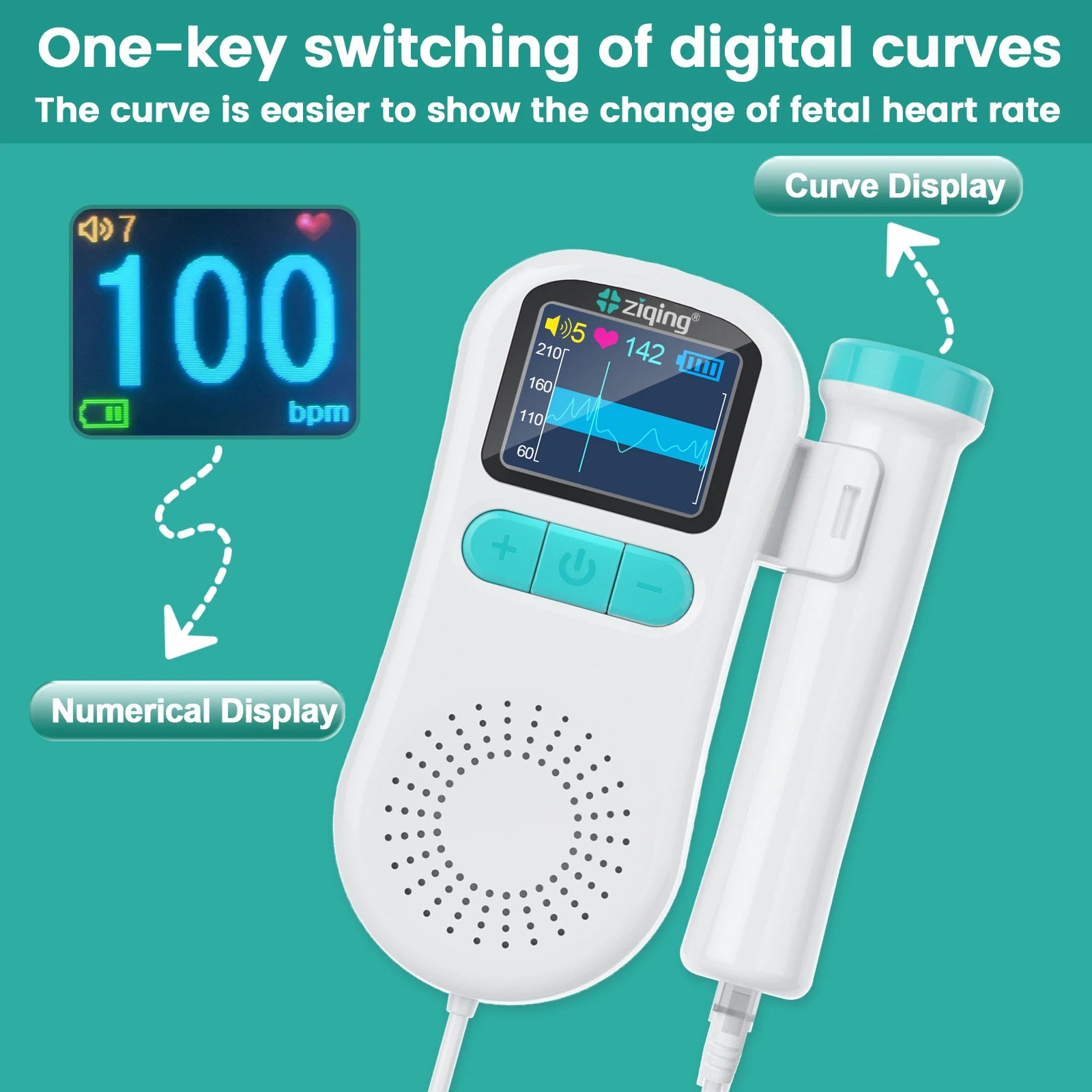 Featuring intelligent noise reduction technology, the monitor’s clear speaker enables you to hear the heartbeat without background noise interference. It is designed with low power consumption and adjustable volume to suit personal preferences, compatible with both earphones and the built-in speaker for private listening or sharing with family members.