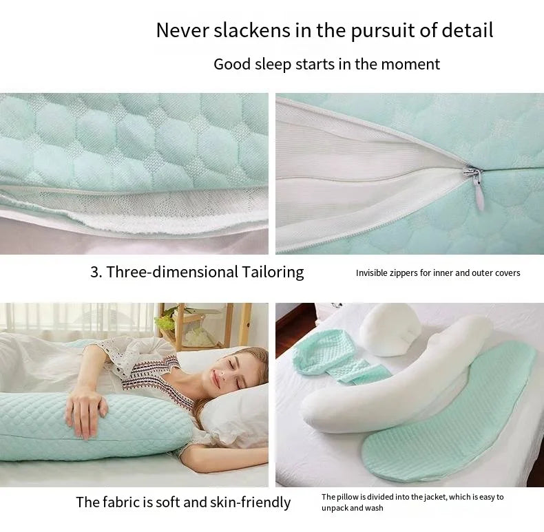 The U-shaped pillow is crafted with a unique cover that incorporates hollow interlayer technology, providing a combination of moisture-wicking and softening layers. This advanced design ensures that the pillow remains breathable and sweat-absorbing, keeping expectant mothers cool and comfortable throughout the night. Additionally, the cover is wear and wrinkle resistant, maintaining its appearance and functionality even with regular use.