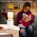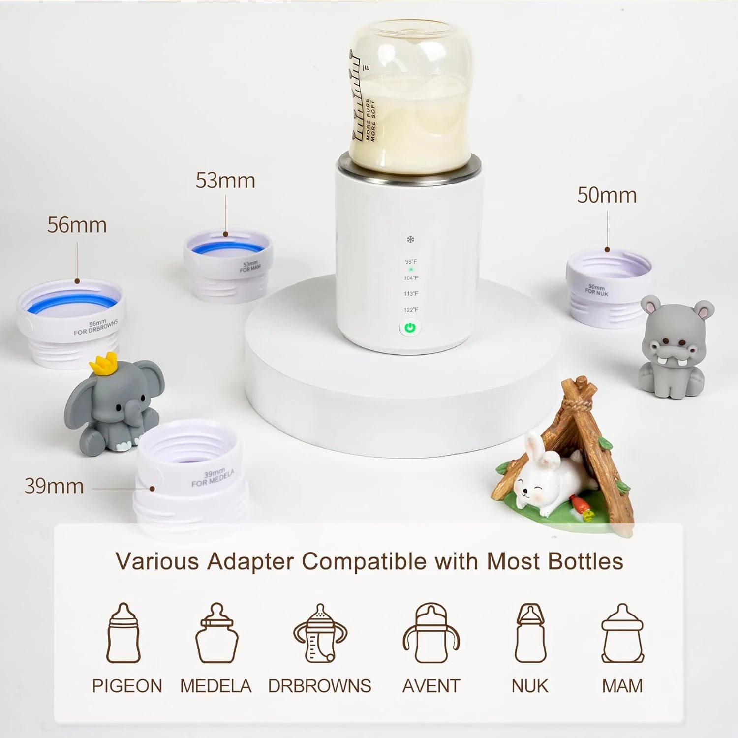 Equipped with a quick heating function, the Wireless Milk Bottle Warmer can warm 4 oz of breast milk to 98℉ in just 2 minutes. Thanks to its advanced temperature sensor chip, you can have peace of mind knowing that overheating is never an issue. This makes it ideal for quickly comforting a hungry or crying baby, ensuring a seamless feeding experience. Designed to fit most baby bottles, including popular brands like Dr. Brown's, Comotomo, and Medela, this travel-friendly warmer caters to all your breastfeeding needs.